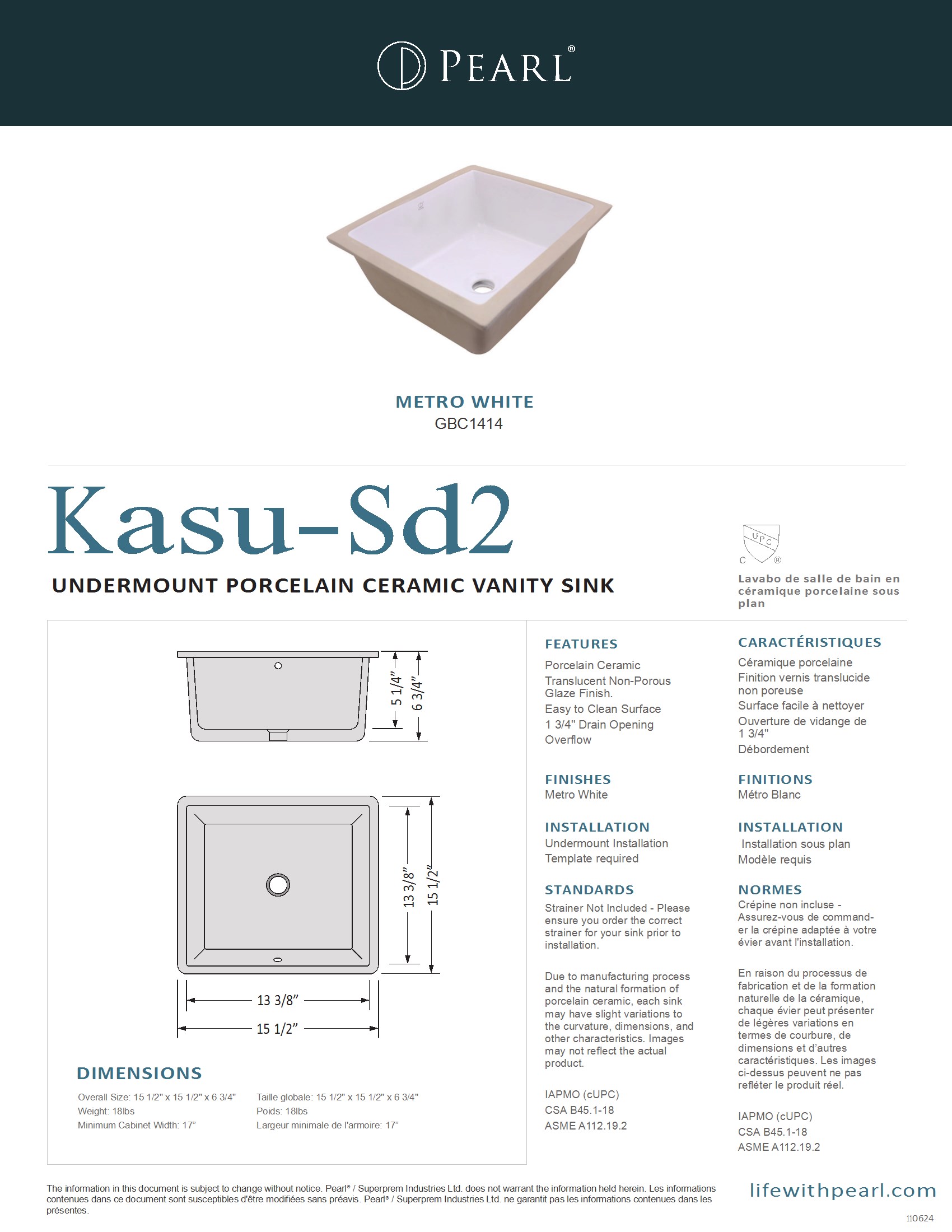 Le design carré du KASU-SD2 présente un encombrement réduit, ce qui en fait l’option parfaite pour les petits meubles-lavabos ou les salles d’eau. Fabriqué en céramique pyroclite et fini en blanc métro, cet évier est à la fois durable et élégant. Les éviers Pearl sont construits pour durer, sont assortis d’une garantie à vie exceptionnelle et bénéficient du service à la clientèle inégalé de Pearl Canada.