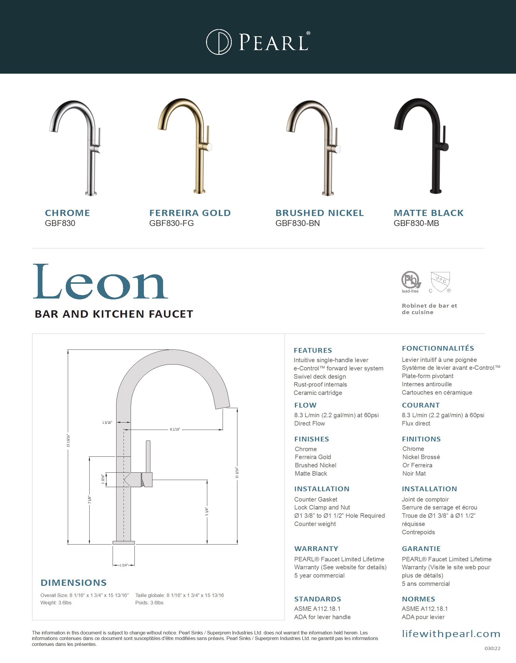 Facile à utiliser et à installer, le LEON est conçu pour durer. Son design moderne et élégant apporte une esthétique sophistiquée à votre bar ou à votre cuisine. Assemblage soigné et durable et disponible en quatre finitions exceptionnelles.